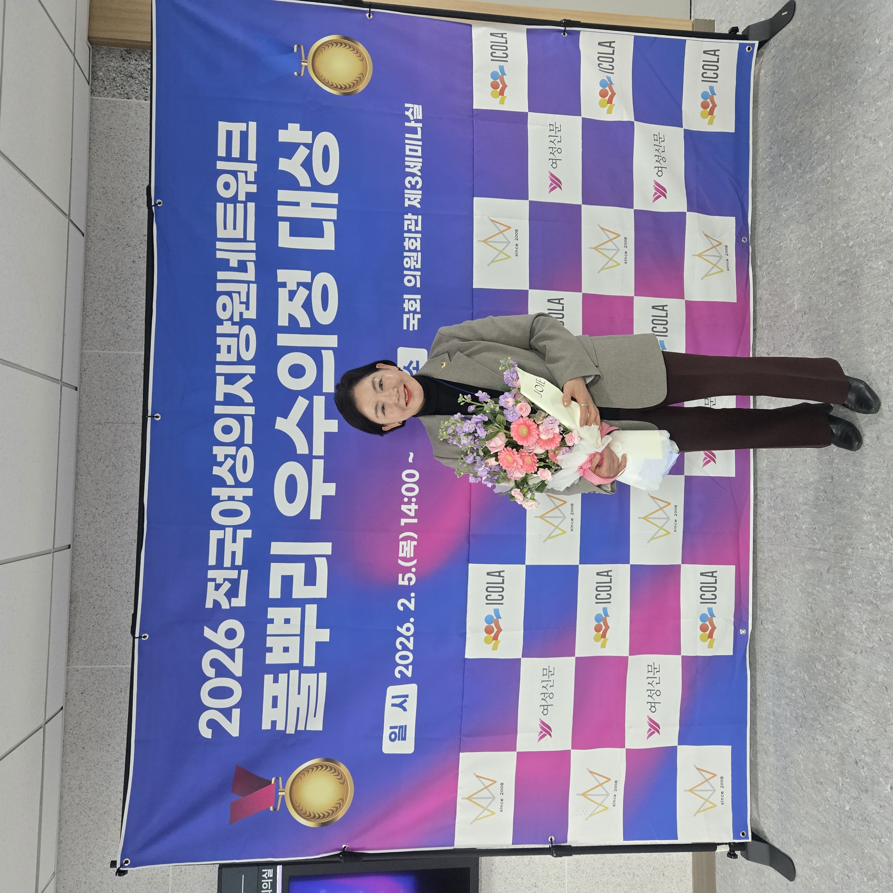 국회 의원회관에서 열린 이번 시상식은 지역 주민의 삶의 질 향상과 풀뿌리 민주주의 실현에 기여한 여성 지방의원들의 우수한 의정활동 사례를 선정해 시상하는 자리다.